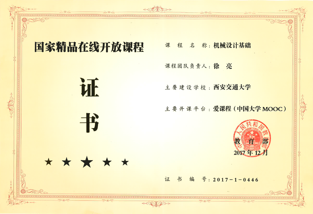 徐亮负责的《机械设计基础》MOOC课程2017年度认定为首批国家精品在线开放课程